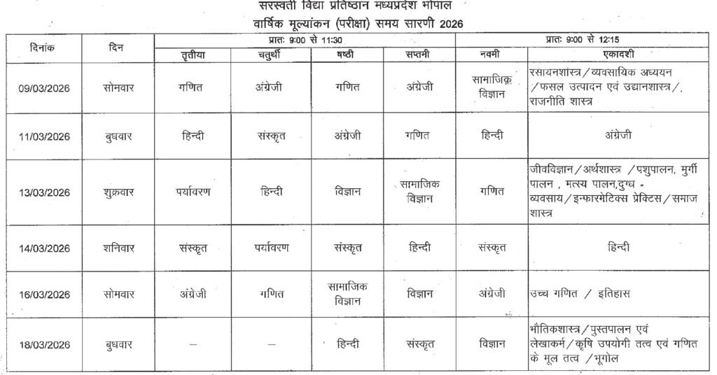 • वार्षिक परीक्षा 2026 समय सारणी